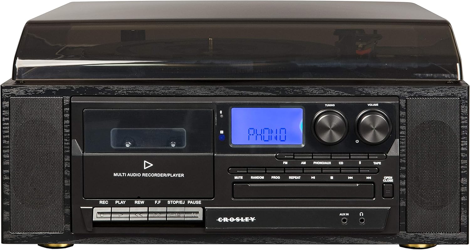 Open Box Crosley CR7010A-BK Ridgemont 3-Speed Turntable with Bluetooth, AM/FM Radio, CD Player, Cassette Deck, and Aux-Input, Black